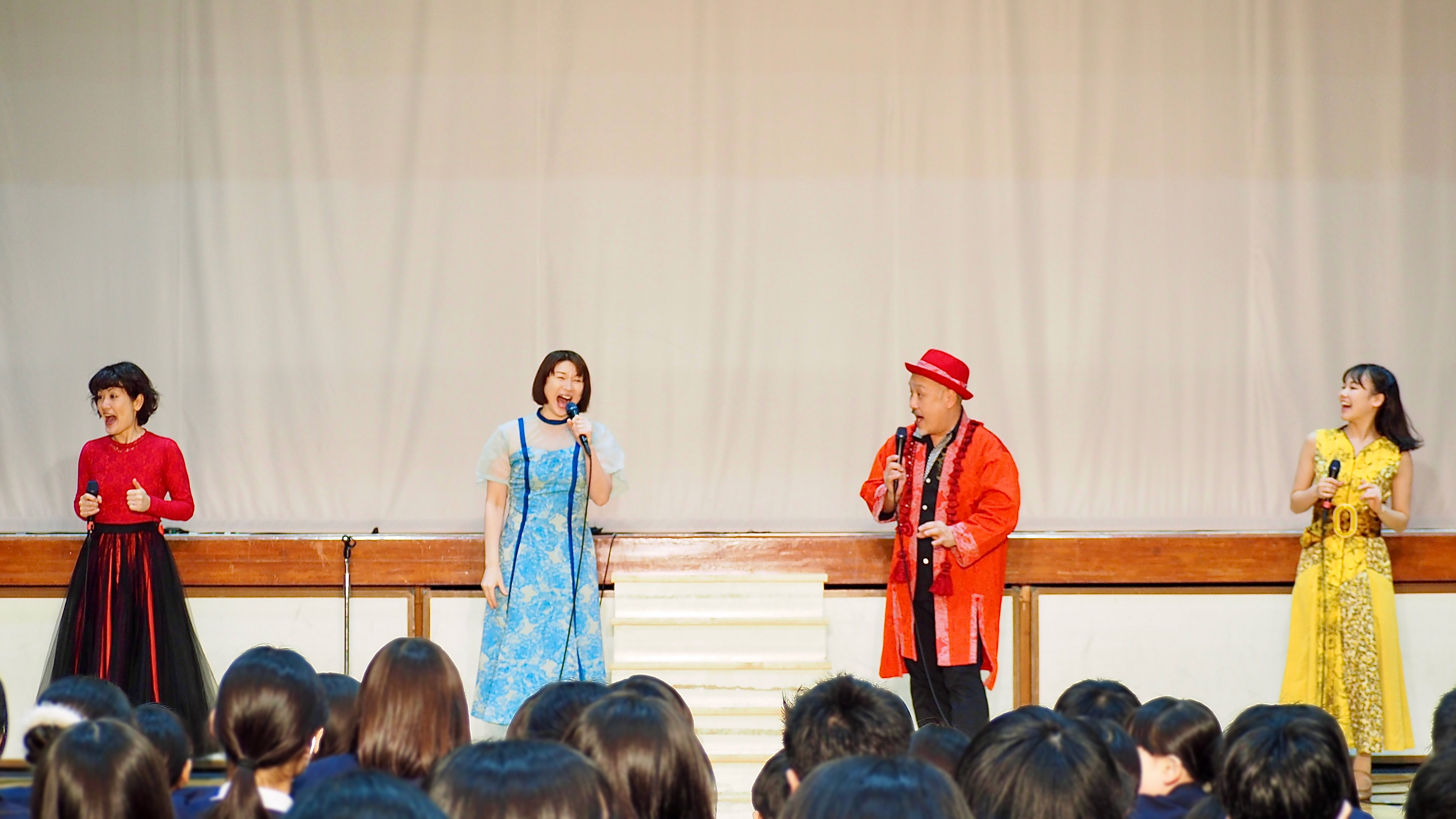 月島第2小学校公演では、全く新しい舞台作りをし、より近くで私達の波動を感じられるようなステージを展開しました。