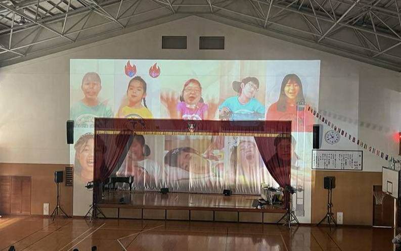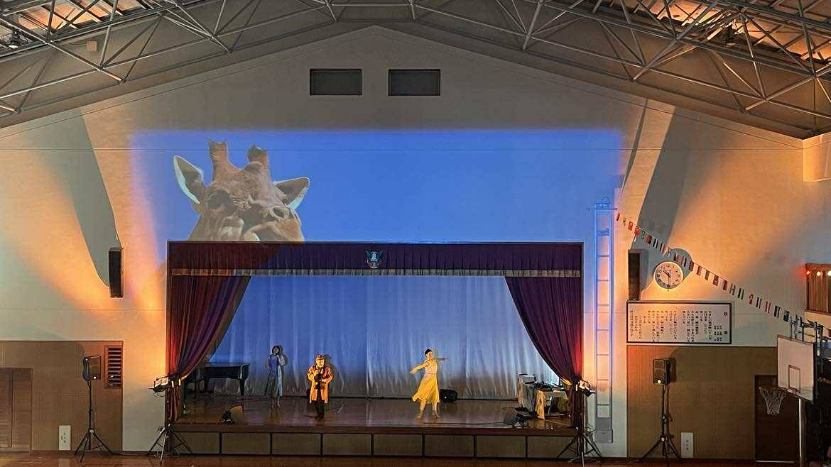 また今回は、子どもたちに映像もより楽しんでもらいたいという思いから、急遽、社会人パフォーマーのちーすけが体育館後方のバルコニーからプロジェクター操作を担当してくれました。普段は心魂の未来に向けた戦略面で力を貸してくれているちーすけ、こうして現場でも支えてくれることも本当に心強く、ありがたかったです。