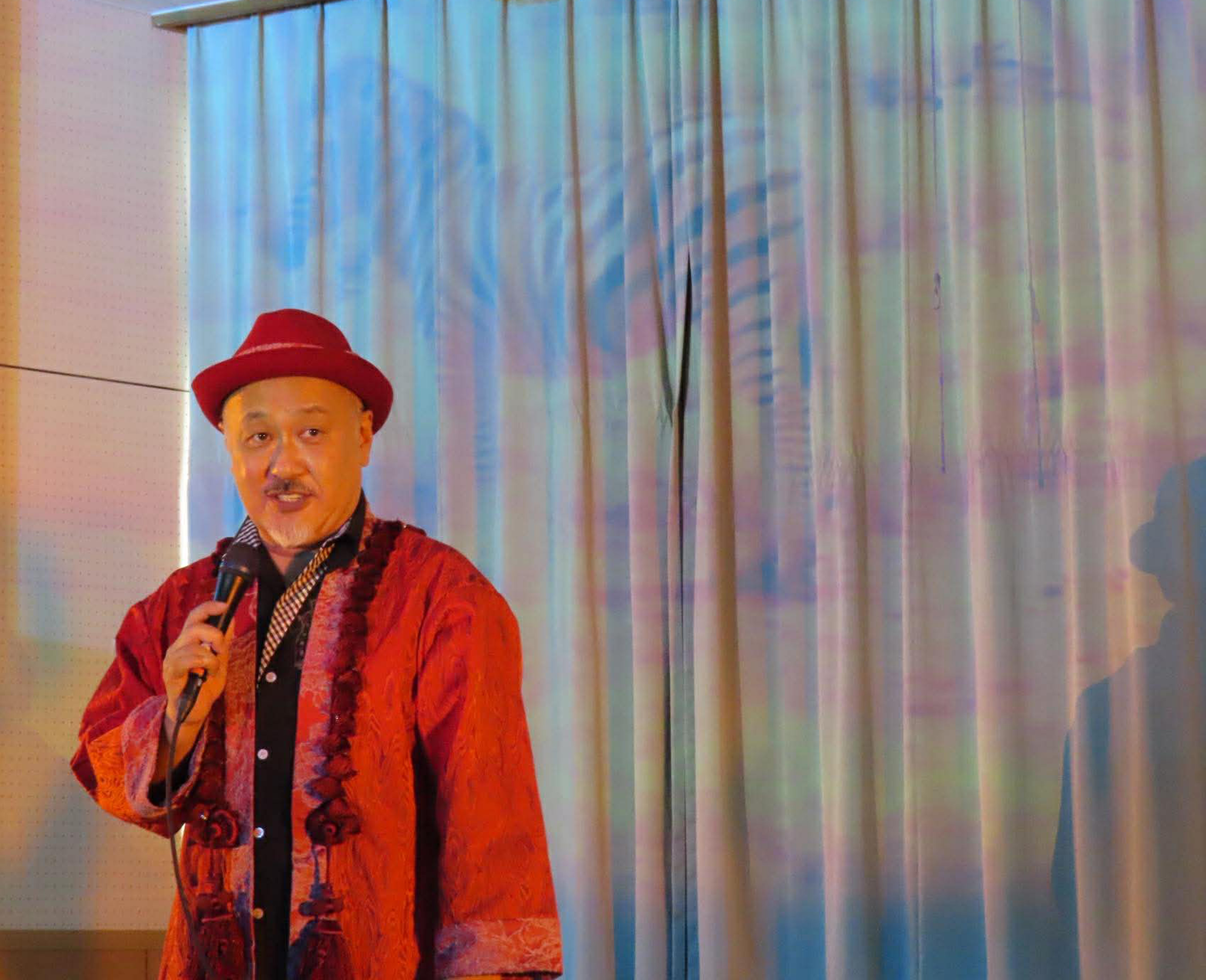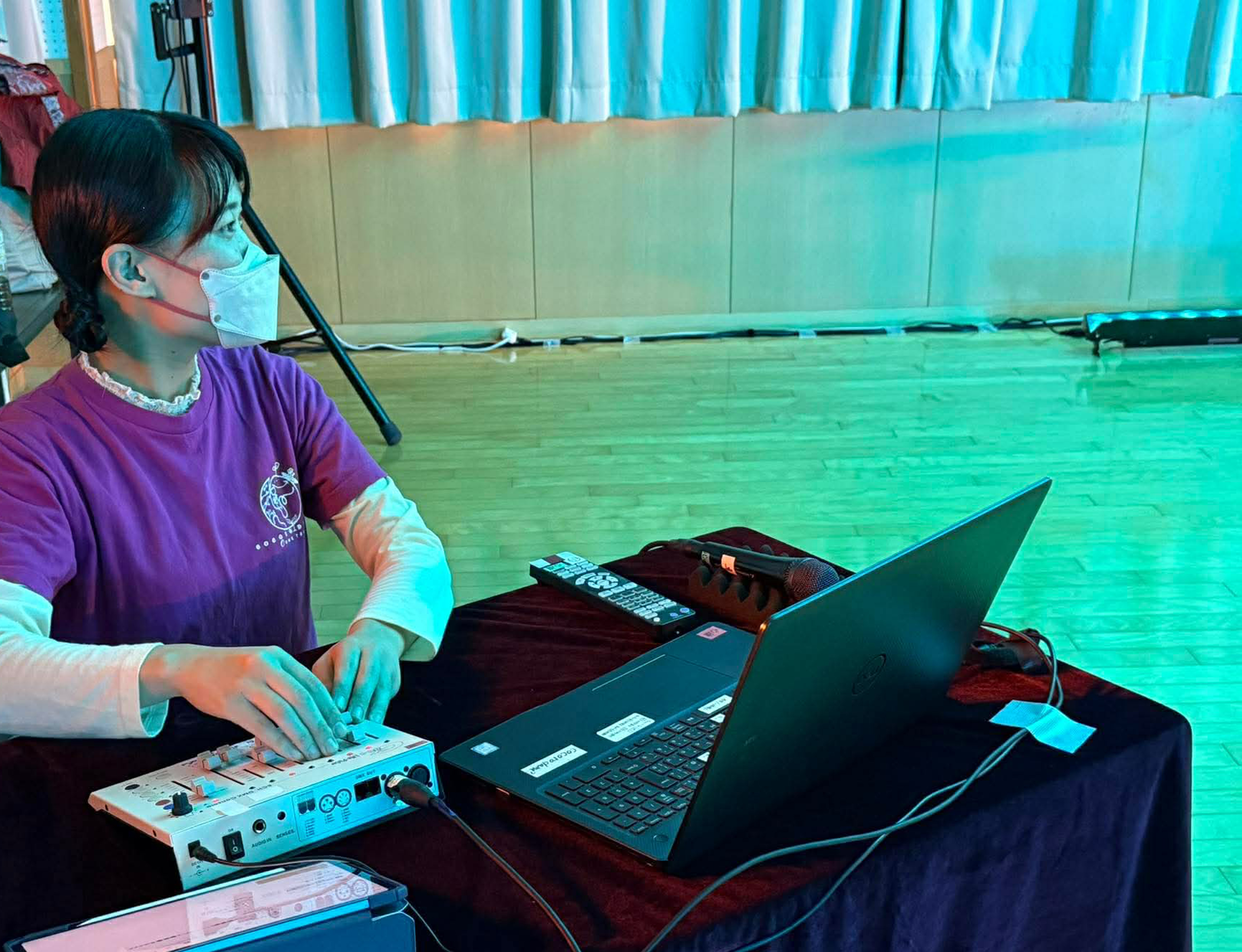 セッティングも毎回試行錯誤を重ねていますが、今回も新たなチャレンジとして、天井にも映像を映し、立体的に広がる劇場空間をつくりました。照明もしっかりと組み、より没入できる空間を目指しました。