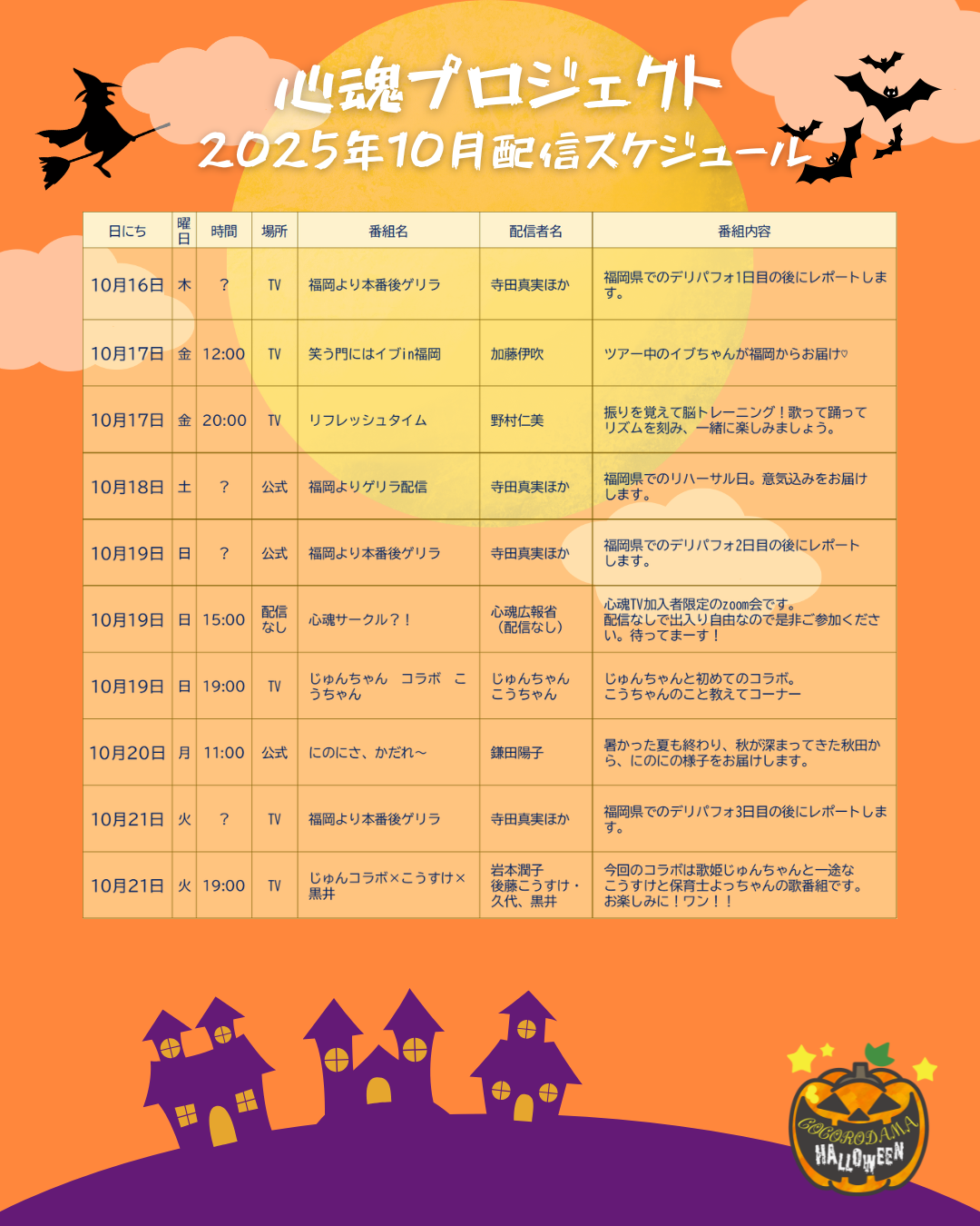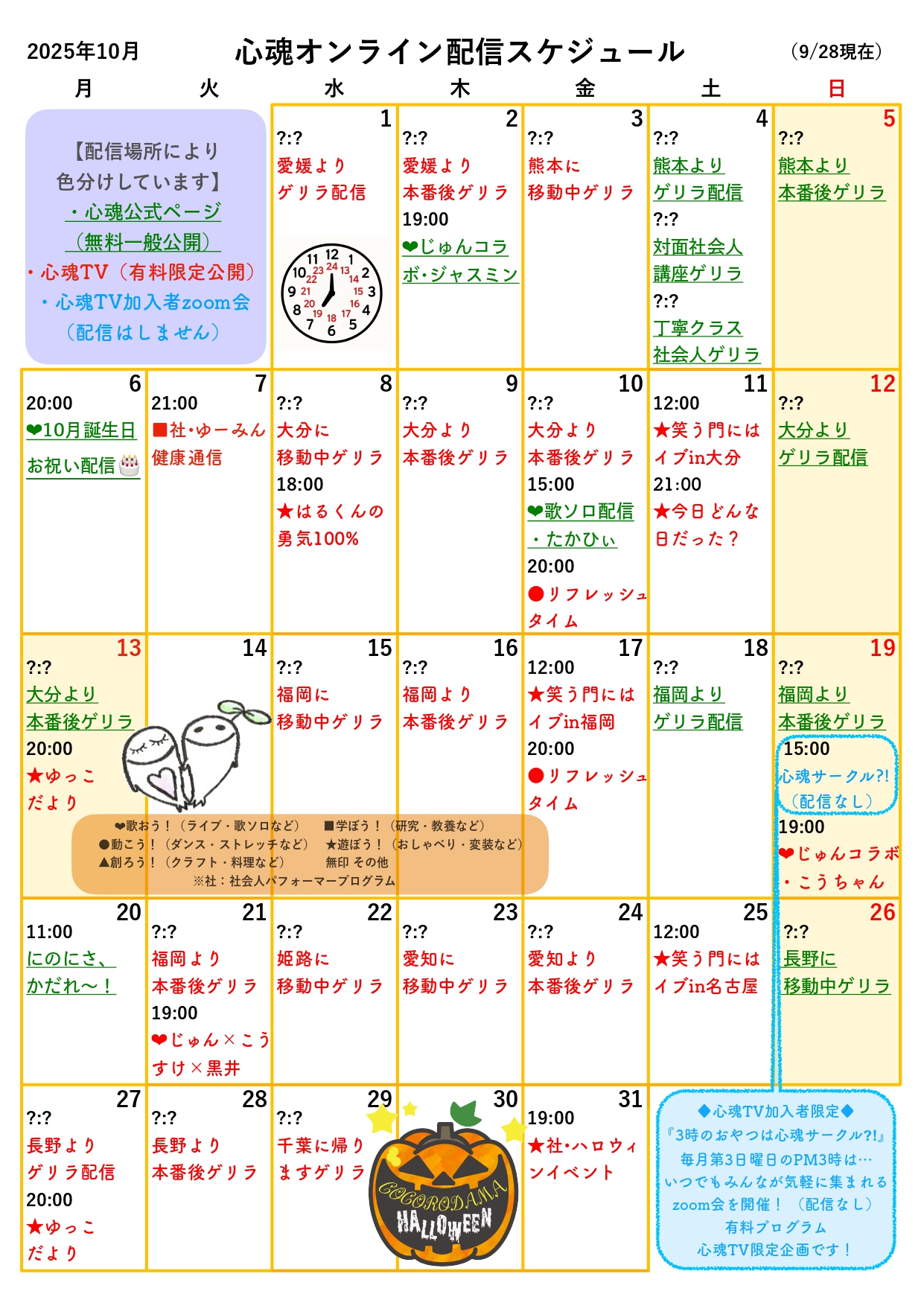 赤字:【 心魂TV 】(有料/限定公開)緑字:【心魂公式Facebookページ】(無料/一般公開)